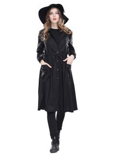 Single Breasted Long Sleeves Women Trench Coats with Drawstring & Pockets