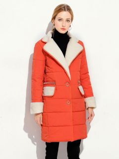 Press Studs Single Breasted Lamb Wool Splicing Thick Women Parka Coat