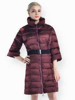 Slim Fit Two-way Zipper Half Sleeves Long Puffer Parka Coat for Women