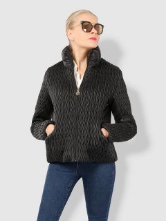 Stylish Zipper Long Sleeves Pleated Design Short Parka Jacket for Women