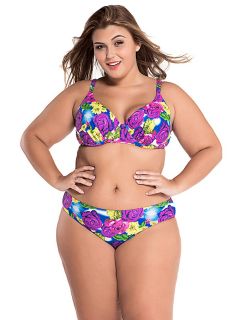 Removable Halter Strap & Padded Bandeau Plus Size High Waisted Bikini Set