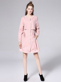 Slim Fit Petit Zipper & Button Light Weight Women Parka Coat with Hood