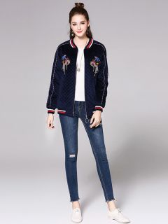 Stand Collar Zipper Closure Padded Petit Slim Lightweight Parka Women